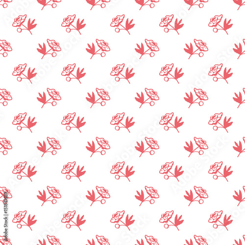 Cute Botanics Pattern With Red Petal And Green Leaf On White
