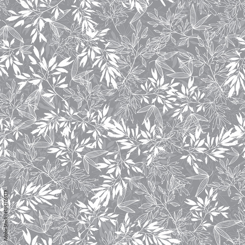 Vector Grey Blossom Branches Leaves Summer Seamless Pattern
