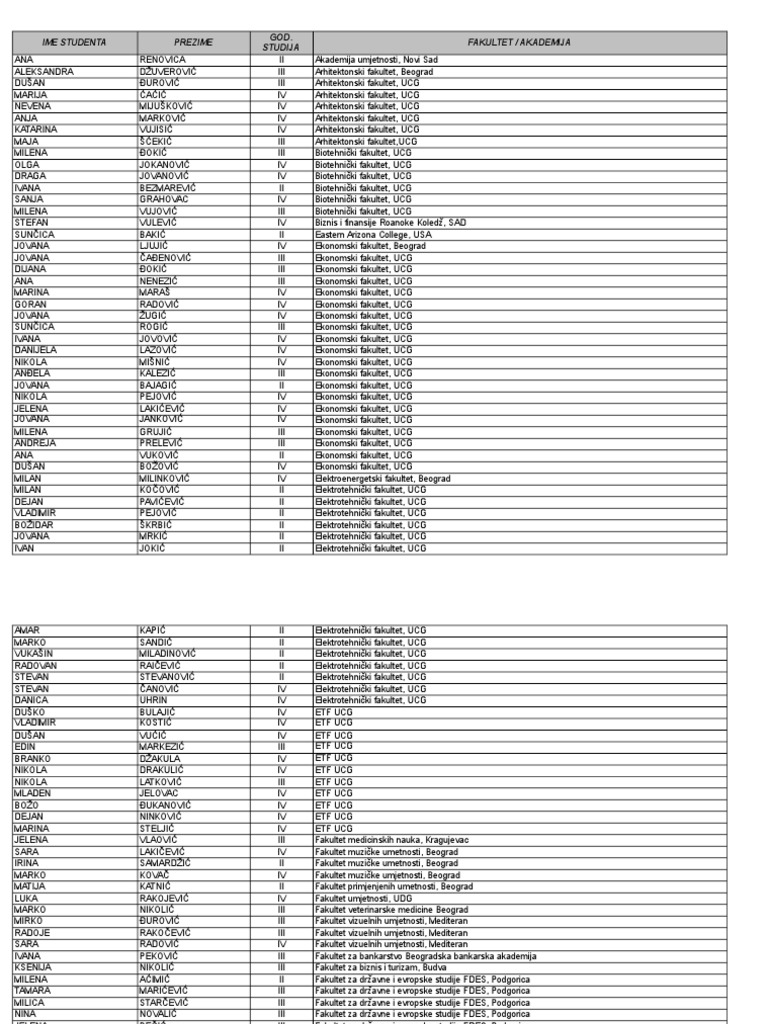 Konacna Rang Lista Kandidata Koji Su Stekli Pravo Upisa U I Godinu