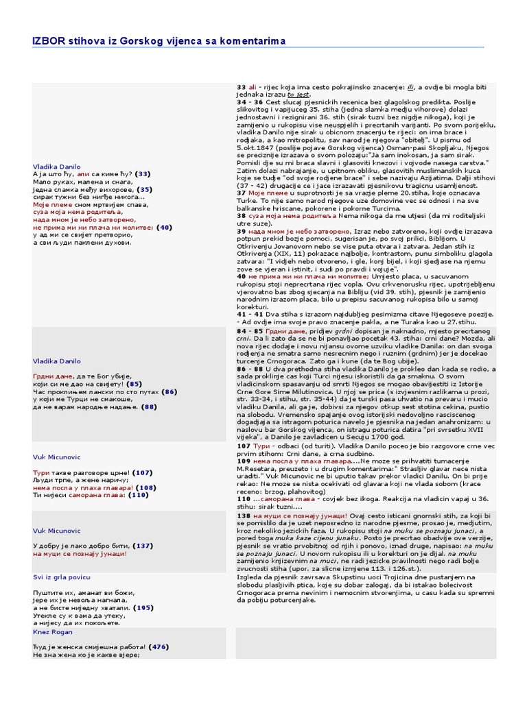 Objasnjenje Stihova Gorskog Vijenca Knjigoljupci