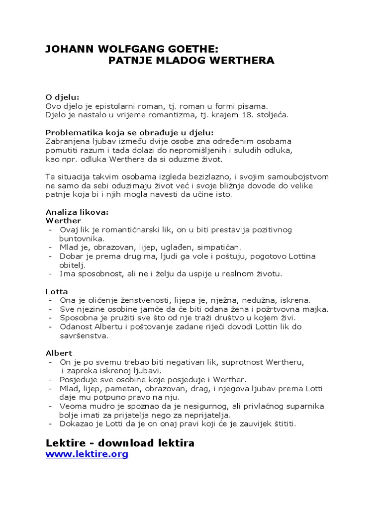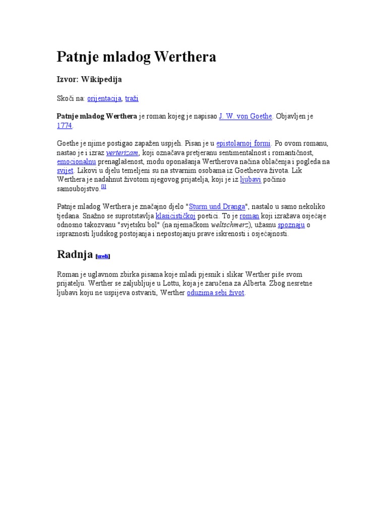 Johann Wolfgang Goethe Patnje Mladoga Werthera